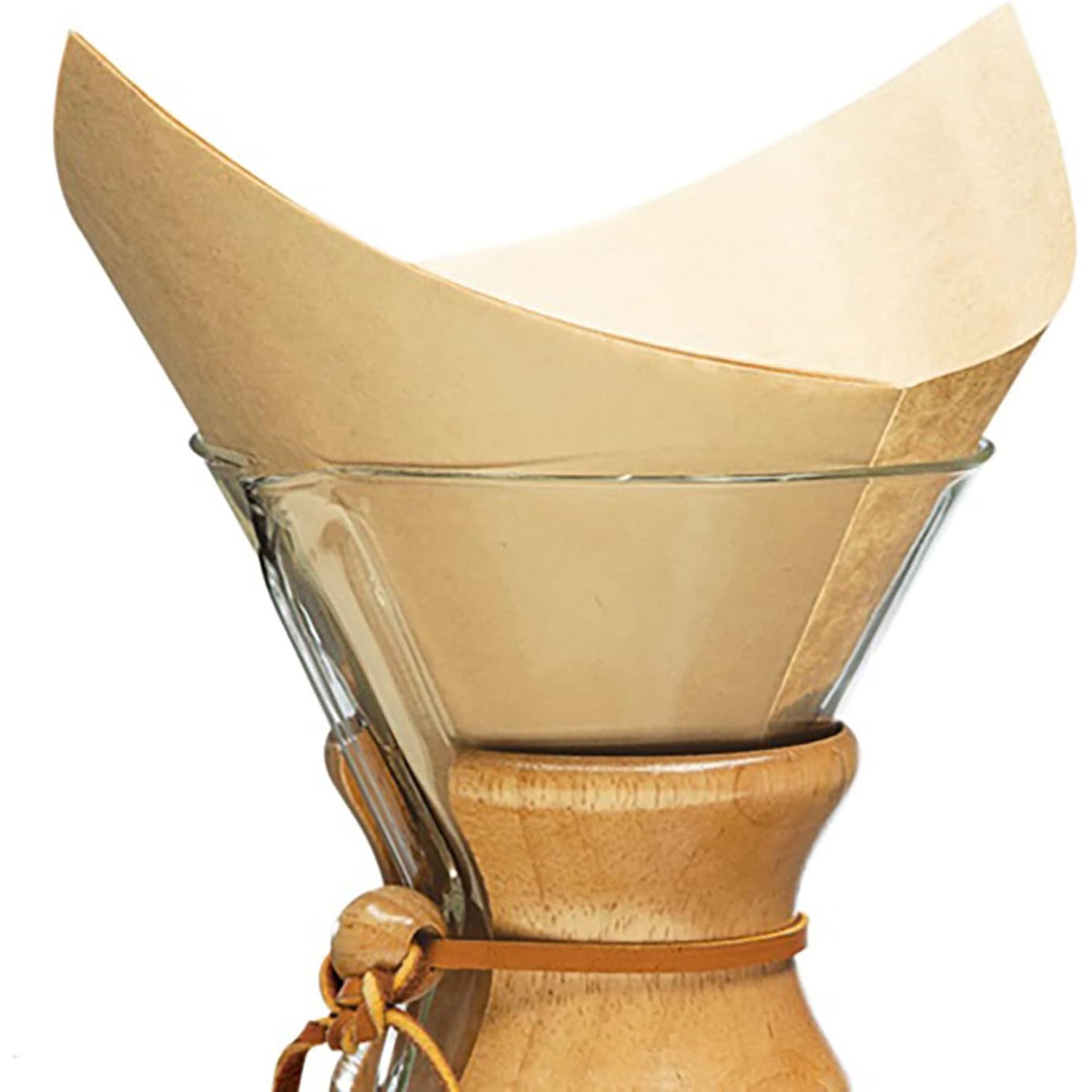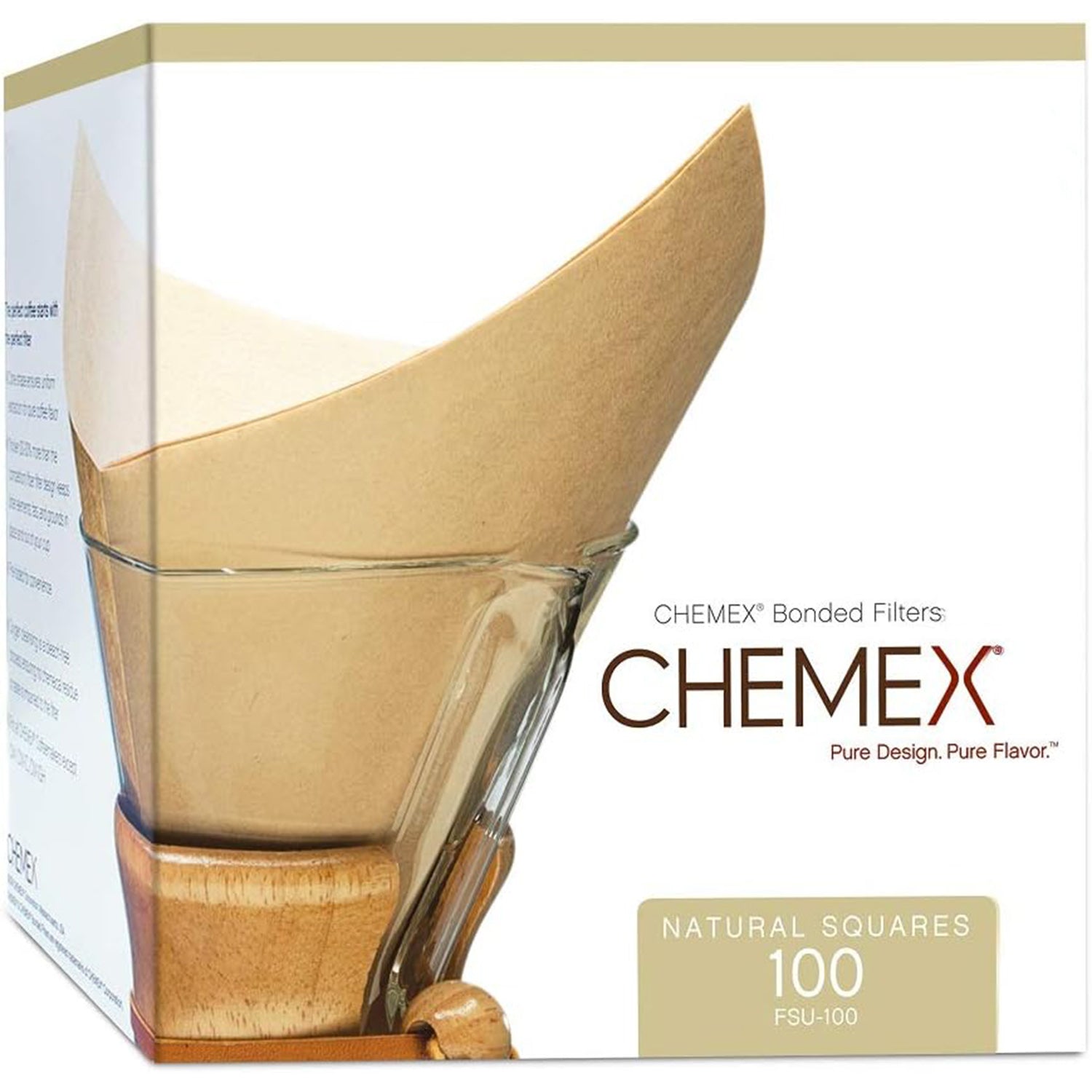 Bonded Chemex Filters. Prefolded square shaped natural filters ensures uniform extraction for pure coffee flavour. Thicker specialty fibre filter design keeps bitter elements, oils, and grounds in their place (and out of your cup). 100-pack.