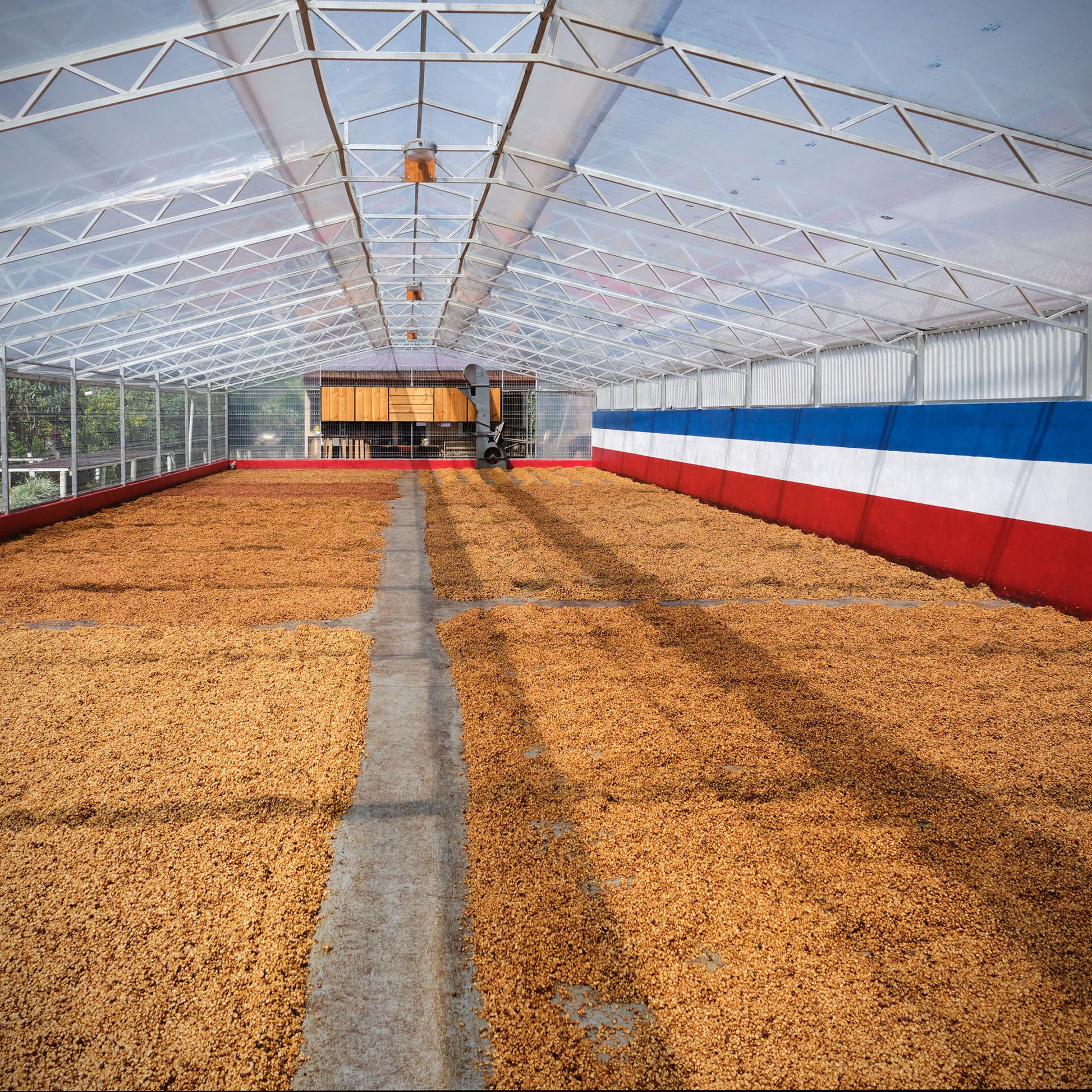 After this process is complete, the cherries are moved to raised beds inside a covered drying space. The entire goal with this curing process is to extend this process for as long as possible, without “stalling” the gradual drying of these cherries. This is truly a passive “curing” process that results in a sweeter, clean and bright cup.