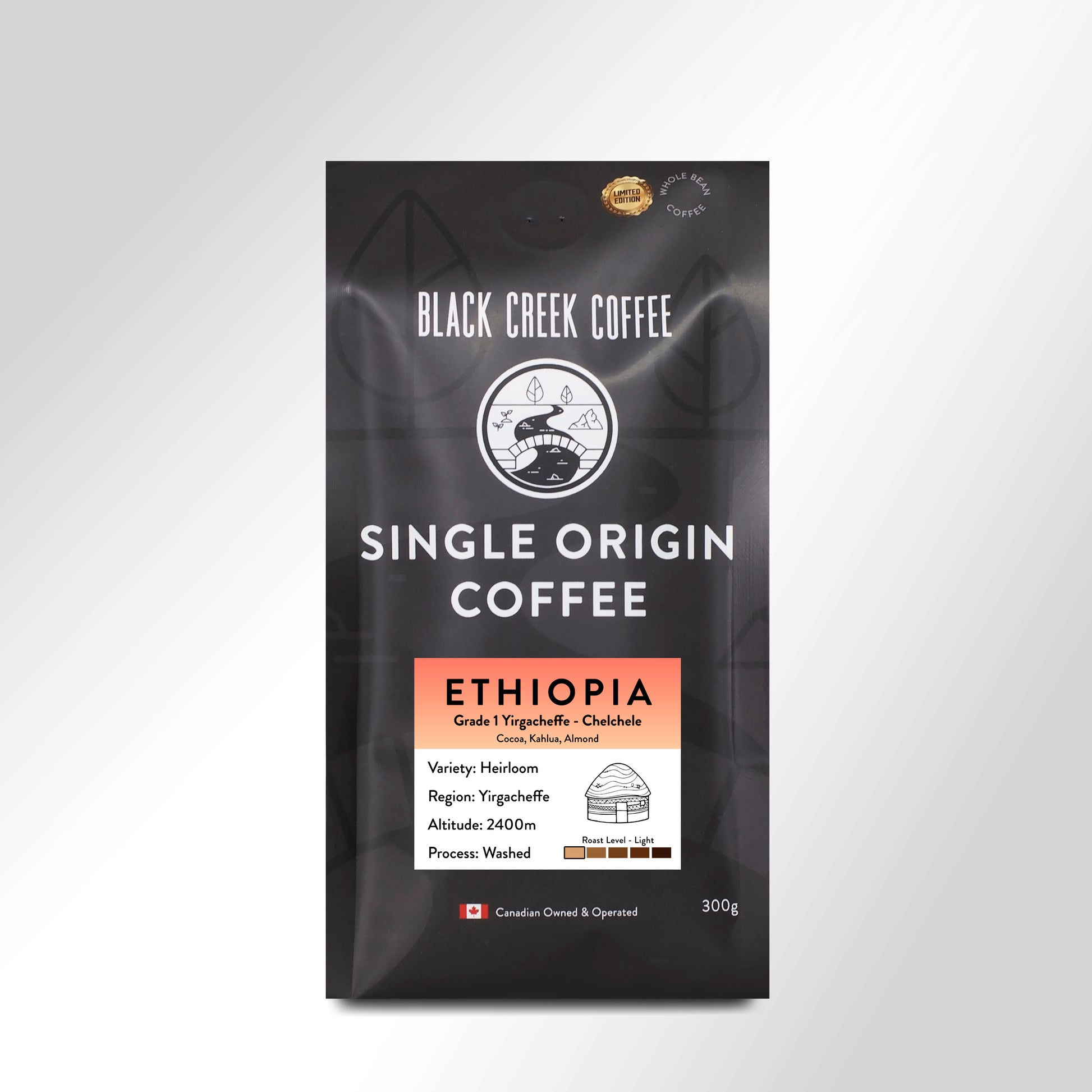 This Grade 1, high grown coffee comes from the Chelchele washing station, in the famous Yirgacheffe region of Ethiopia. Typically, smallholder farmers in this region do not use fertilizers or pesticides in the production of coffee, and they bring their coffee cherries to the village washing station to be washed and dried on raised beds.